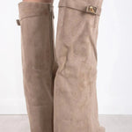 Valdève | Bottes Hautes Femme à Talon Bloc 8,5 cm en Cuir et Suède avec Détail Rabat Élégant